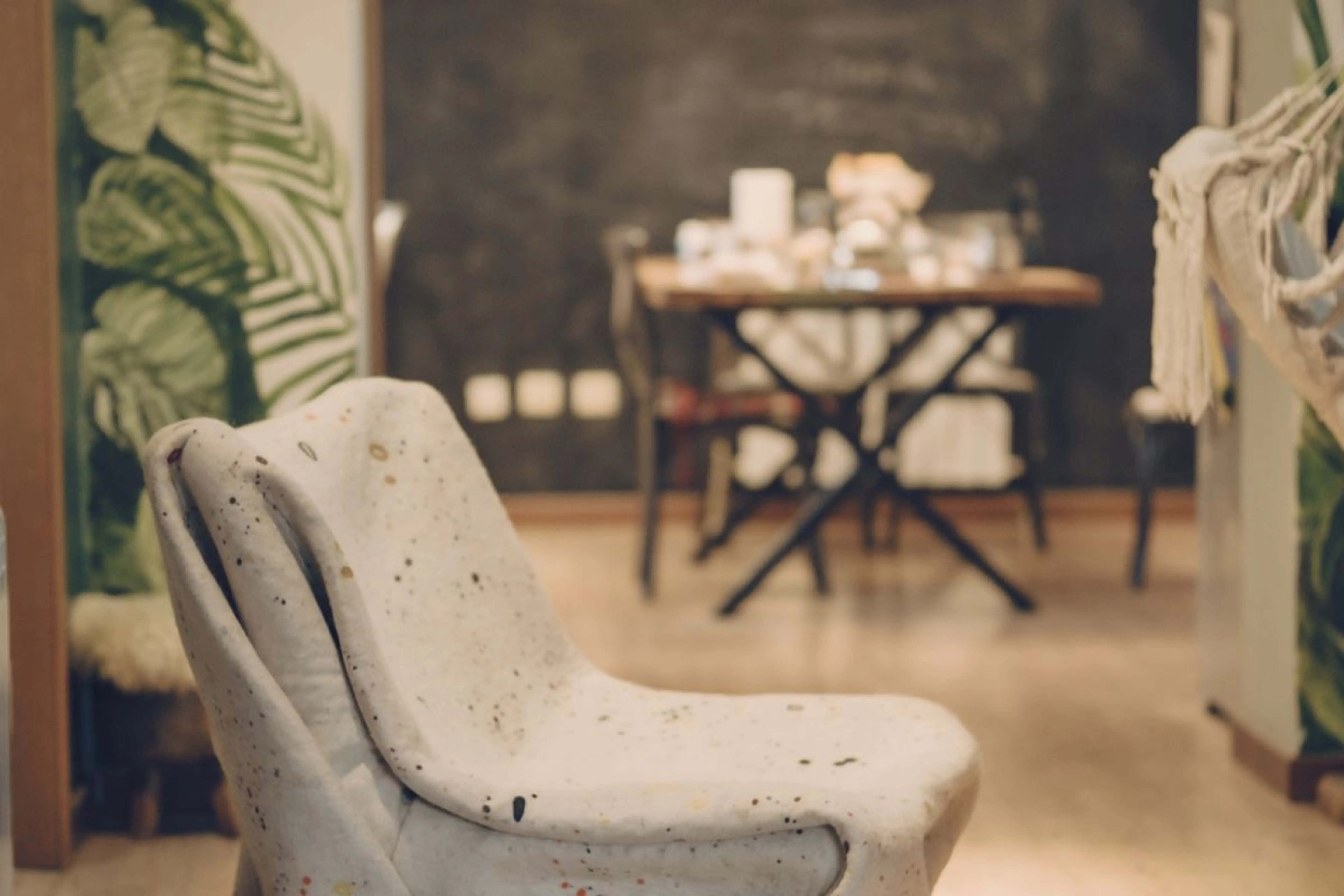 В голове дизайнера все начинается с функциональной задачи. Нет столярной мастерской – значит элементы сопряжения печатаются на 3D-принтере. Швейного цеха нет – ищет материал, который держит форму сам: войлок. Первые кресла Данияра были “лесом из палок и узлов-соединителей”. Сегодня их десять – и это уже новый визуальный код.