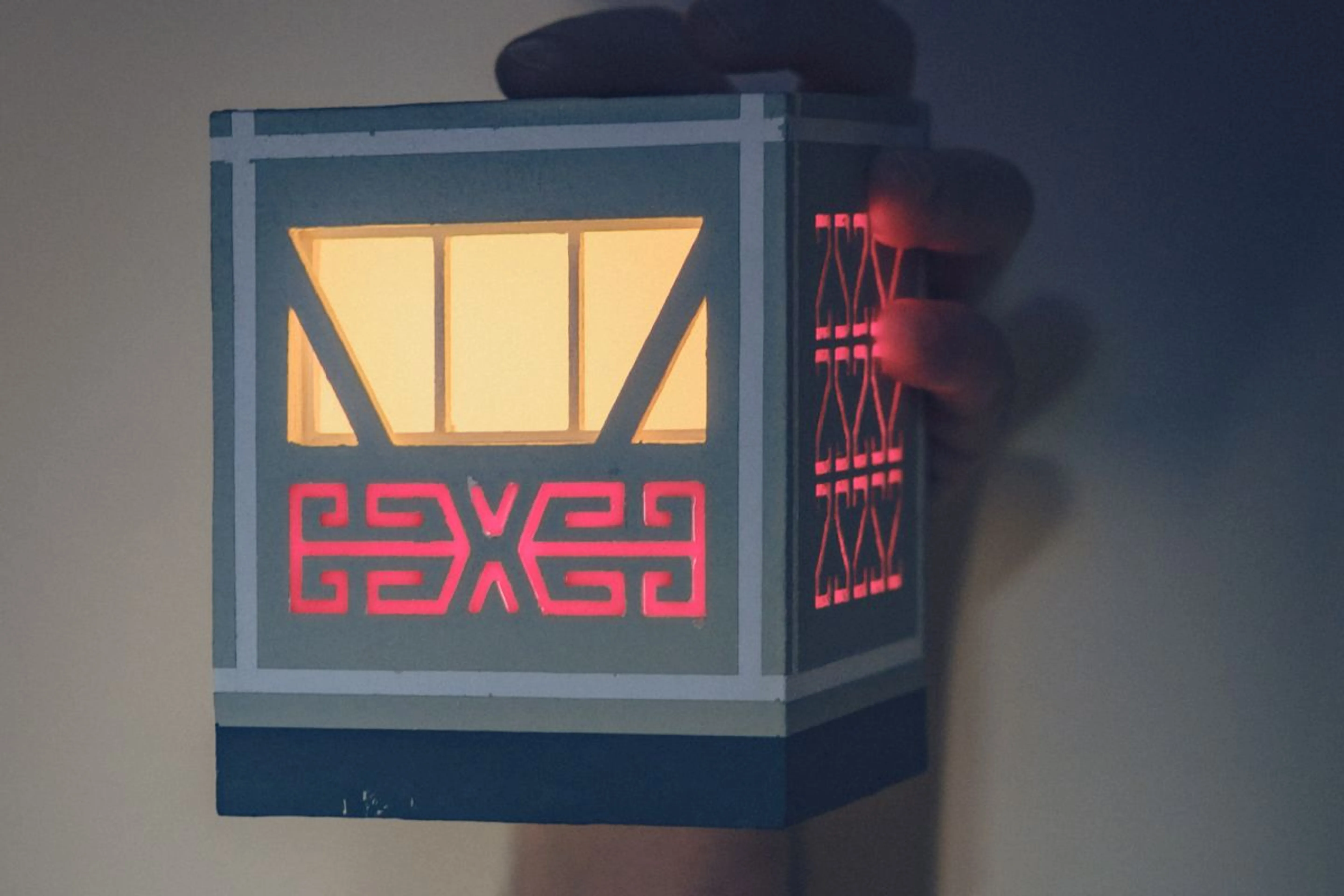 Молчаливая панелька с узором, похожим на инопланетную вязь. Рисунок вырос из традиции не изображать живых существ, заменяя их орнаментальной письменностью. В ночнике Булат дублирует подъездное окно, создавая ощущение входа домой, в детство, защищенность и тот момент, когда тебя "загоняют" с прогулки.