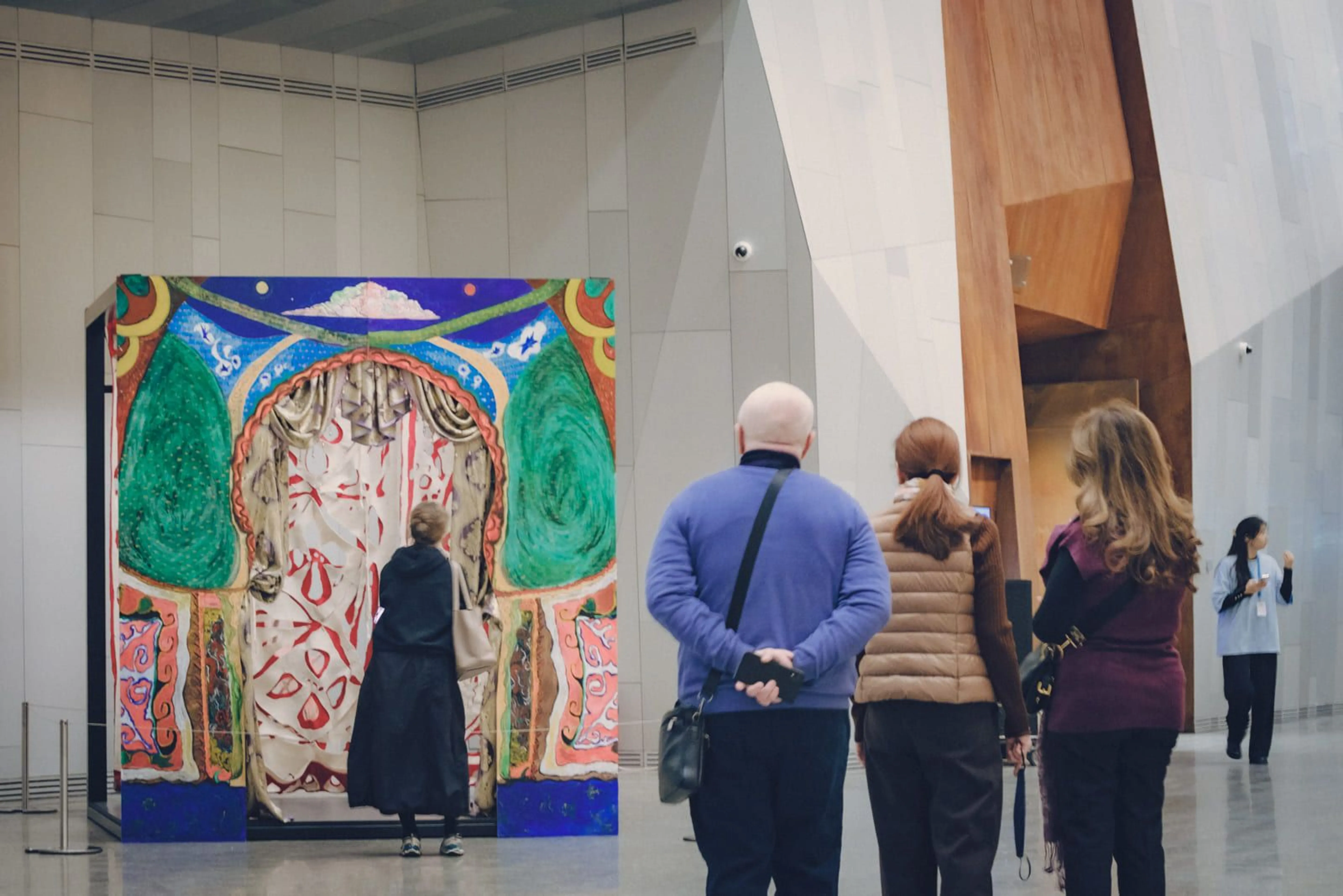 Музей запускает новую традицию, превращает свою “Улицу искусств” в площадку для крупных инсталляций и художественных жестов. Логично, почти неизбежно, что первой в этом пространстве оказывается именно Бахыт. Ее инсталляция “Чудо” (2023), созданная для гонконгского Centre for Heritage, Arts and Textile, впервые показана в Казахстане и сразу стала частью коллекции.