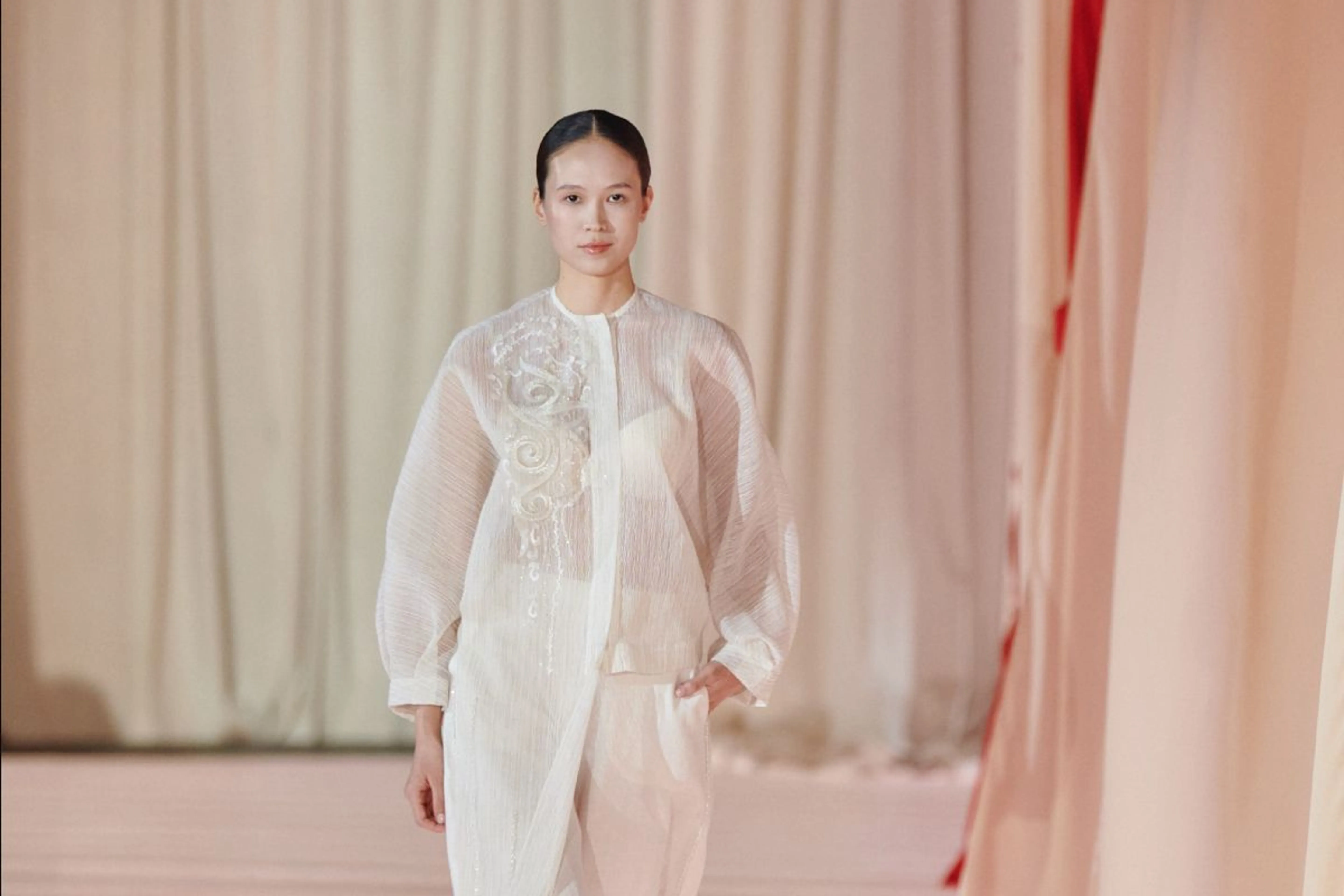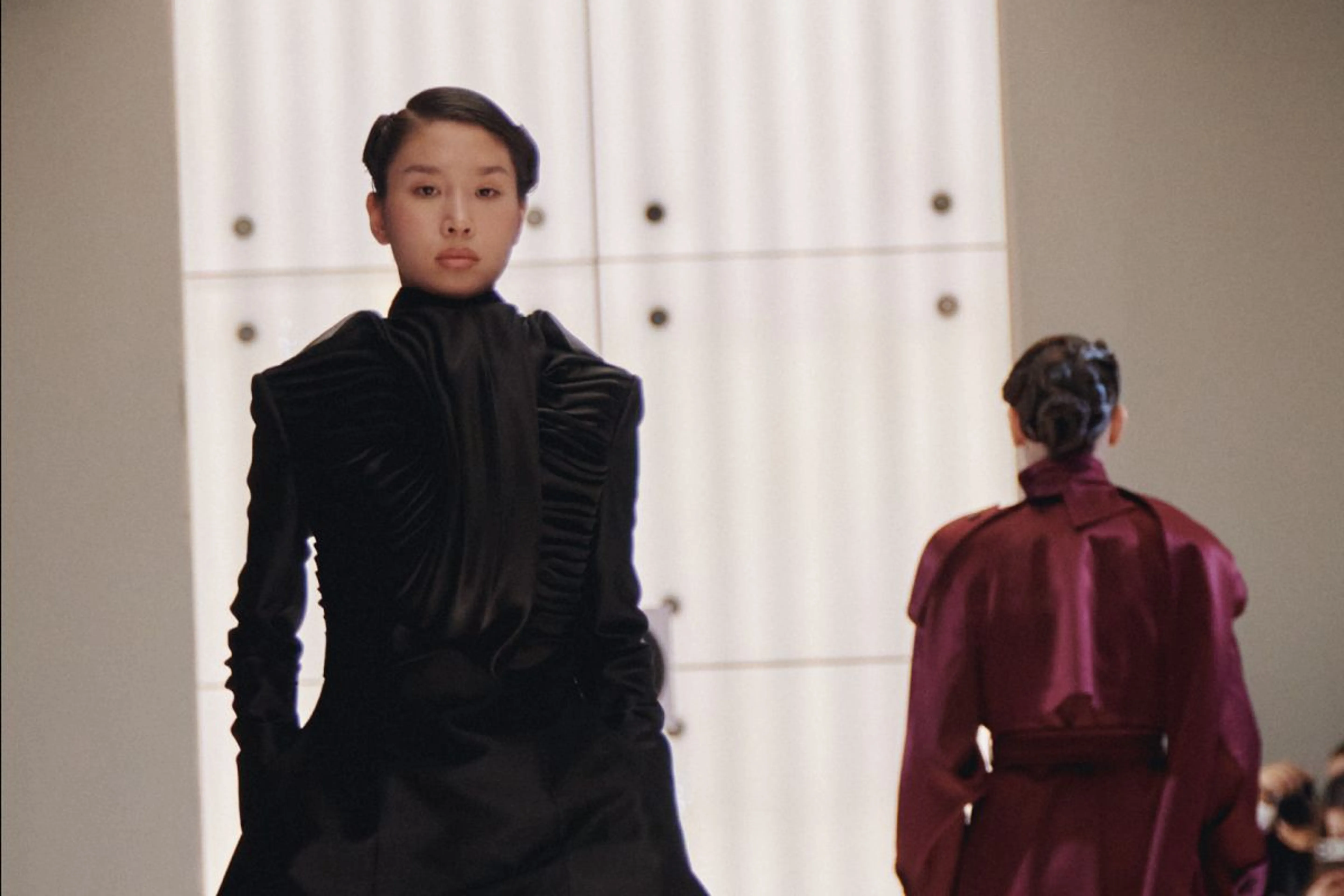 Главной темой показа стал поиск внутренней свободы. На подиуме сменяли друг друга противоположные миры. Одни дизайнеры сделали ставку на воздушную, почти ускользающую эстетику с мягкими тканями и плавными силуэтами. Другие, наоборот, вывели моделей в строгих архитектурных образах с острыми углами и плотными фактурами.