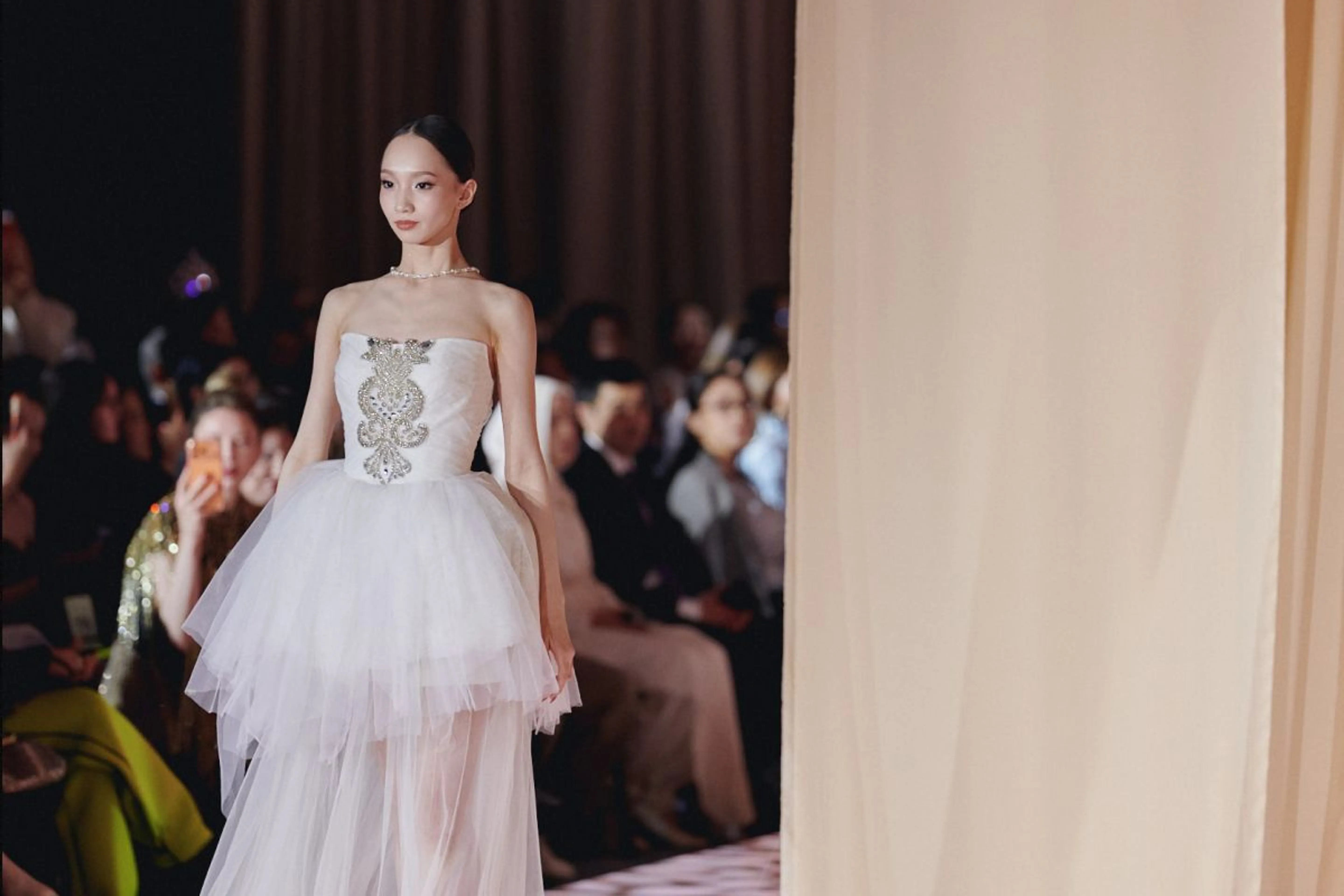 В кулуарах The Ritz-Carlton Astana после показов было особенно оживленно – публика активно обсуждала работы зарубежных дизайнеров. Работы иностранных гостей заметно выделялись, предлагая иной взгляд на крой и фактуры. Зарубежные участники привезли более экспериментальное и провокационное видение образов на подиуме.